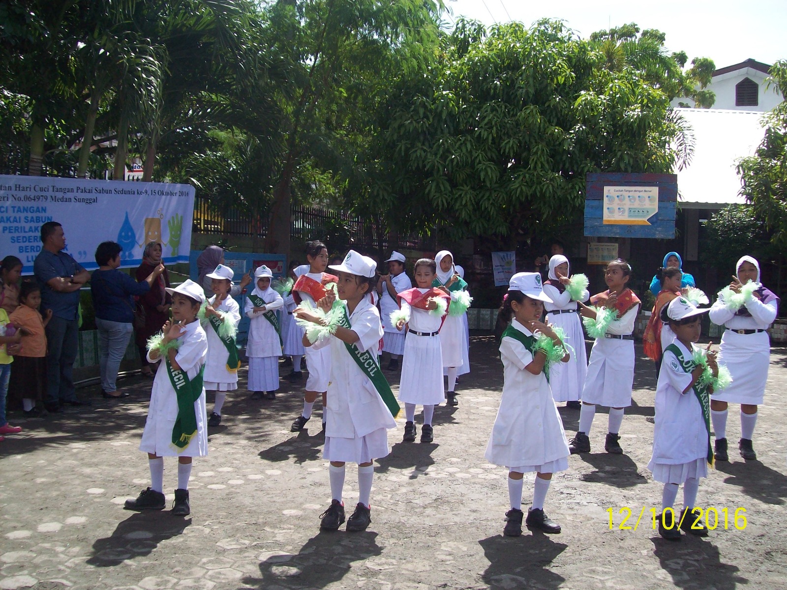 Saat itu aku menampilkan tari persembahan sekaligus mengedukasi teman-teman tentang cara mencuci tangan dengan benar sesuai usia kami.